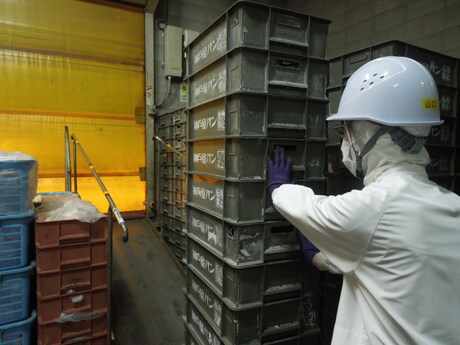 ・パン箱の整理⇒トラックで戻ってきたパン箱を室内に入れて整頓します